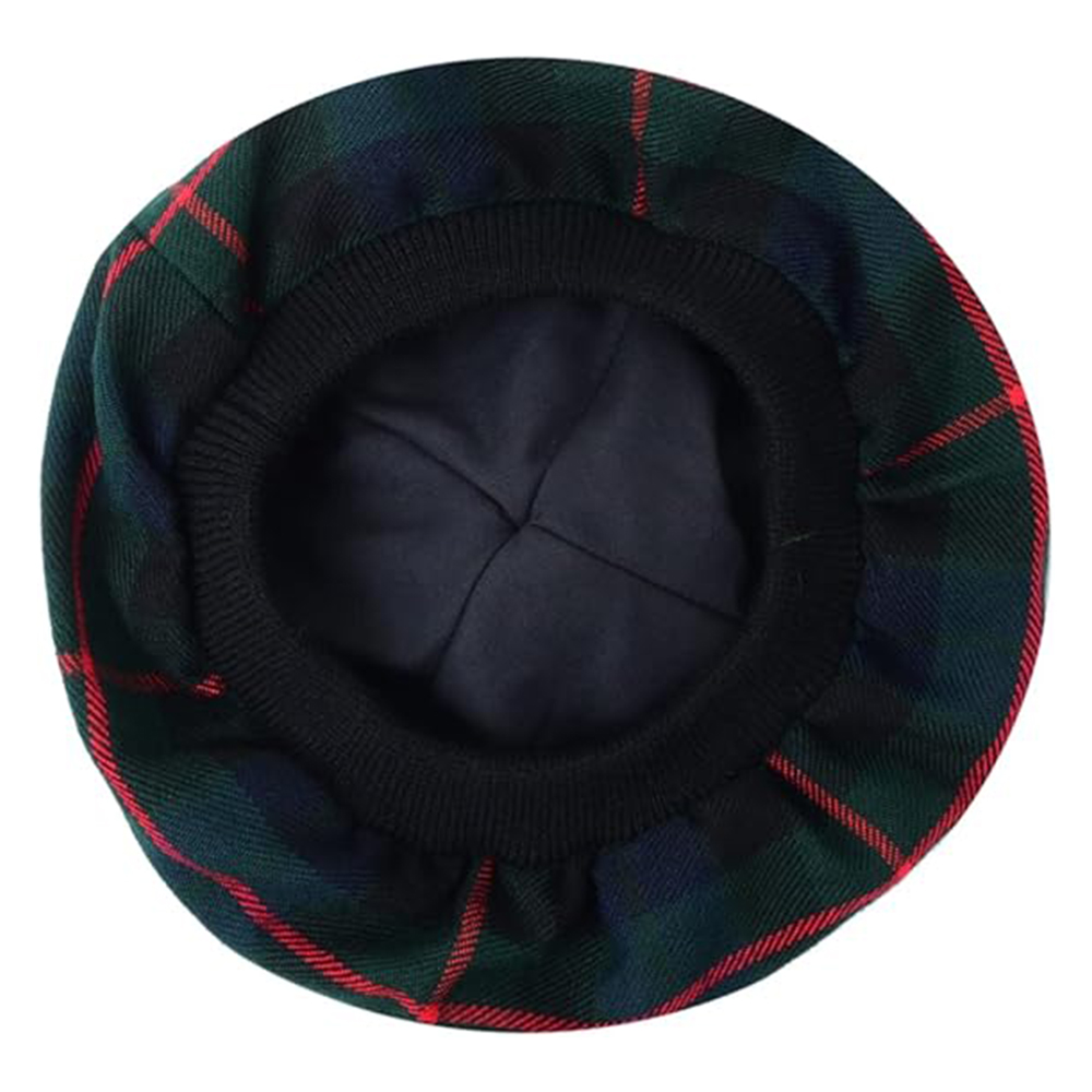 Crafted from high-quality wool for warmth, durability, and comfortable wear. Classic Scottish bonnet design with a dark plaid pattern for a timeless, traditional look. Features a black pom-pom on top for authentic Scottish styling. Stitched band around the base provides structure and ensures a secure fit. Lightweight and breathable, suitable for long hours of wear. Maintains its shape while offering a snug and comfortable fit. Perfect accessory for Highland dress, formal Scottish attire, or cultural events. Ideal for festive occasions, outdoor activities, or adding a heritage-inspired accent to any outfit.
