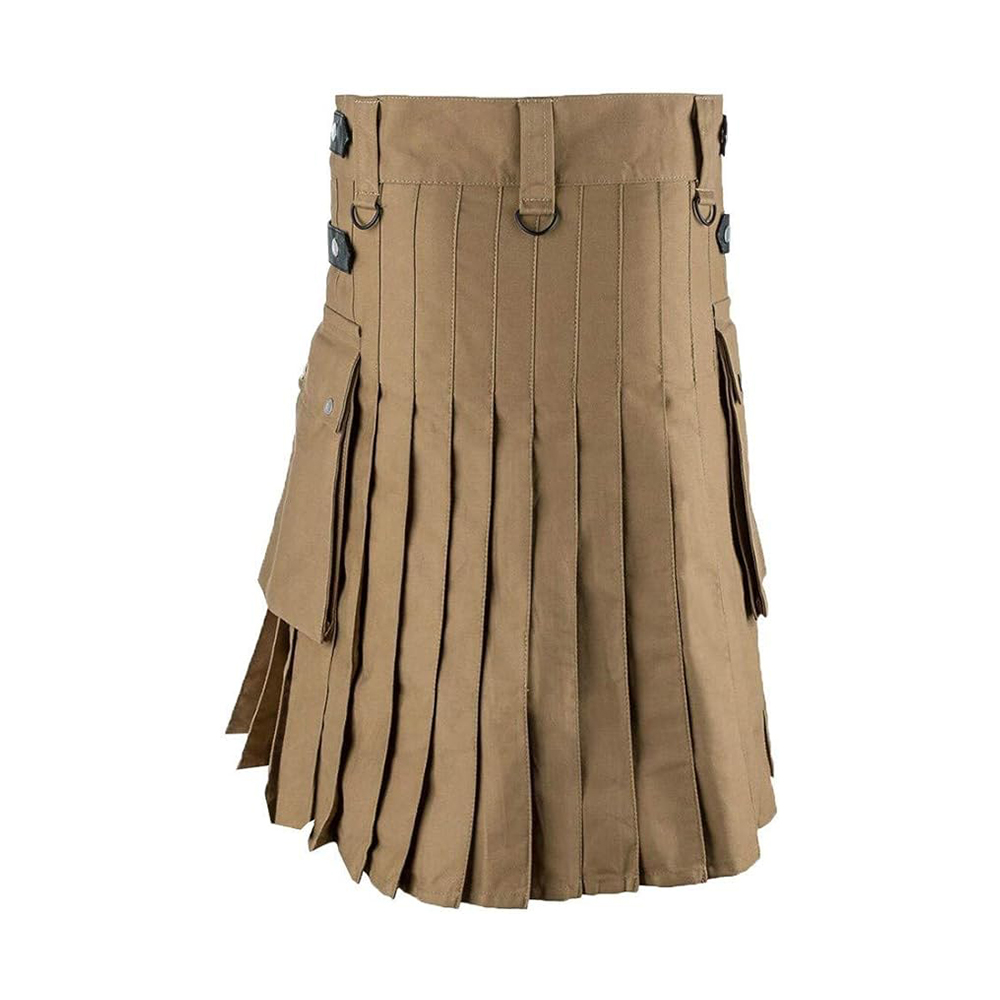 Customizable with your logo, size, or cargo pocket design options. Made from durable khaki fabric for comfort, flexibility, and long-lasting wear. Features a practical side cargo pocket with reinforced stitching for added utility. Ideal for outdoor adventures, casual wear, or custom utility kilt collections.