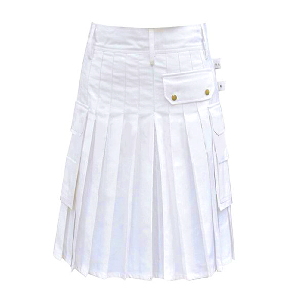 Men’s Modern White Kilt with Cargo Pockets