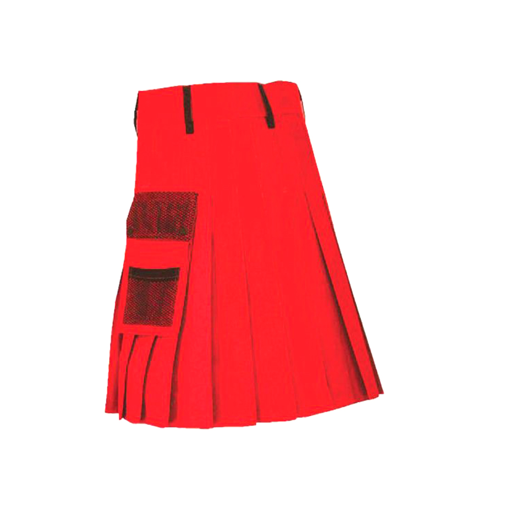 Customizable with your logo, size, or accent details for a personalized modern kilt. Made from durable, high-quality fabric for comfort, flexibility, and long-lasting wear. Features a vibrant red color with practical utility styling for everyday use. Perfect for casual wear, festivals, Highland dress, themed events, or contemporary Scottish fashion.