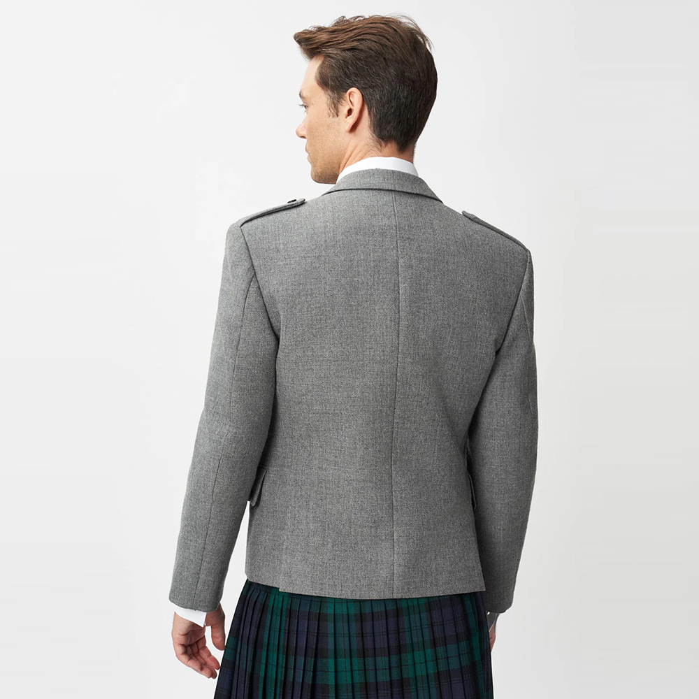 The Keville Light Grey Tweed Jacket & Waistcoat with Black Watch Kilt