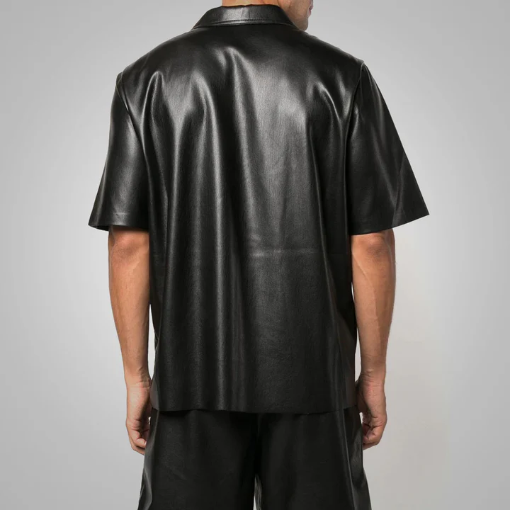 Crafted from premium dark green leather, giving the shirt a bold, modern, and standout appearance.