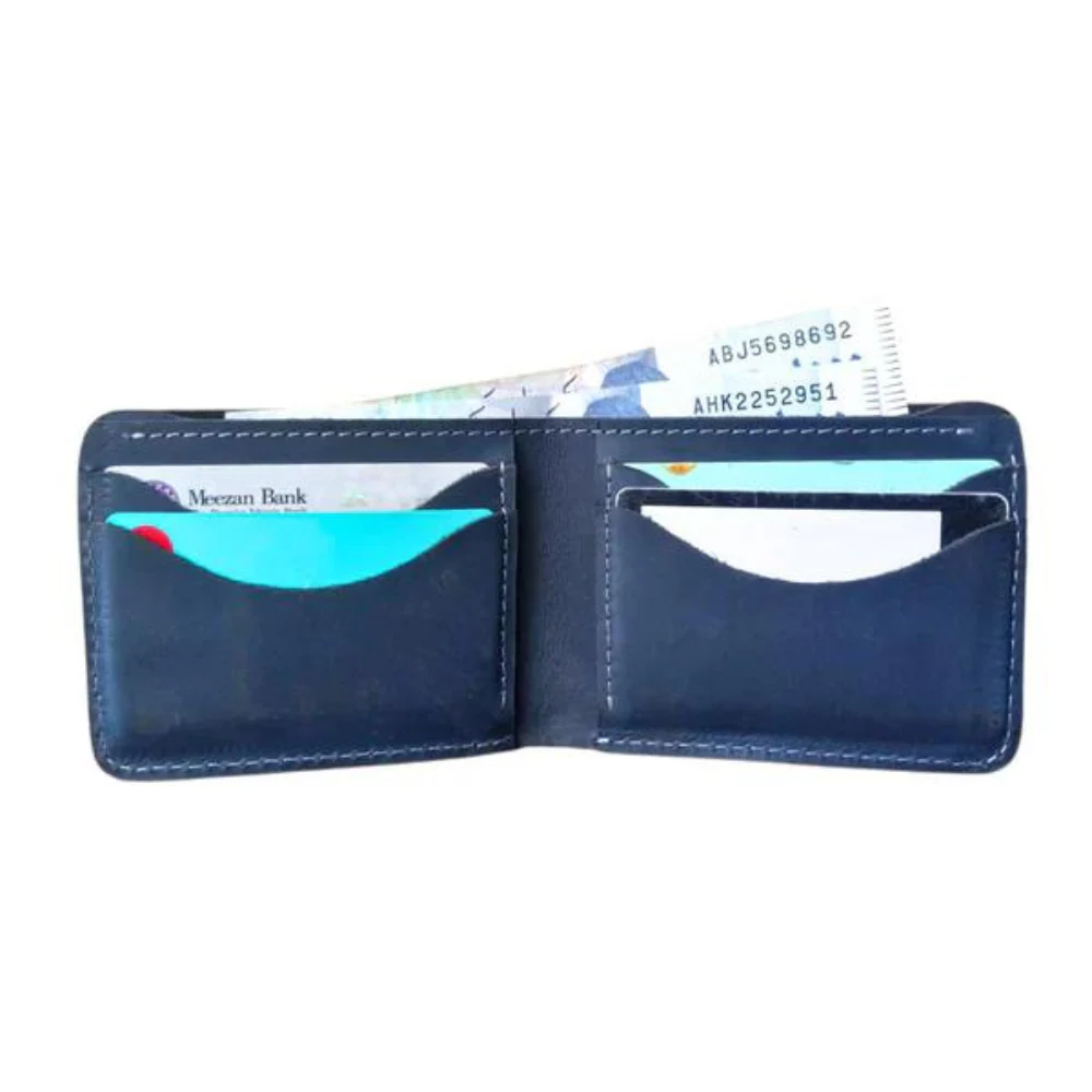 Navy Bifold Leather Wallet for Men