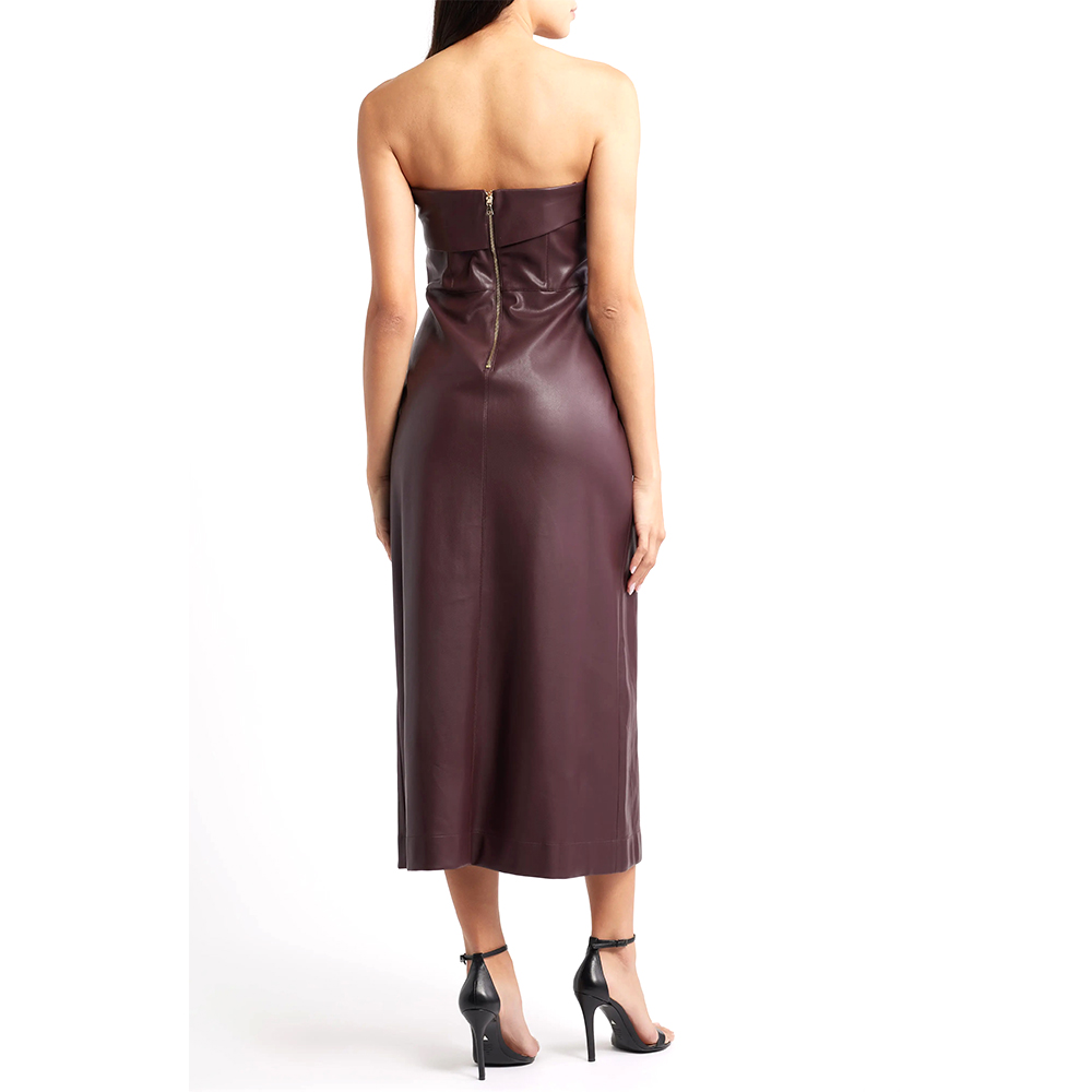 Elegant strapless midi dress crafted from high-quality Real leather.